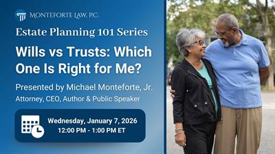 Join experienced elder law and estate planning lawyer Michael Monteforte, Jr., CEO of Monteforte Law, as he covers everything you need to get started with estate planning. Learn which estate planning problems wills and trusts can address, how to navigate the estate planning process and associated costs, and how estate planning and long-term care intersect. You?ll leave knowing:
